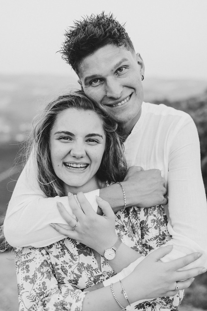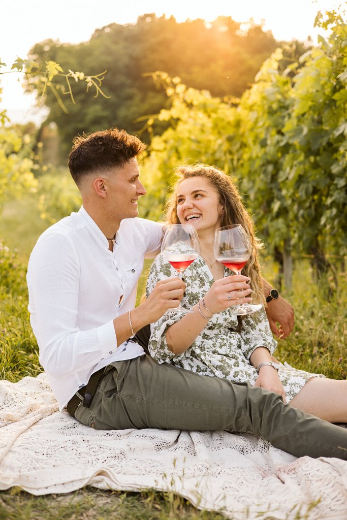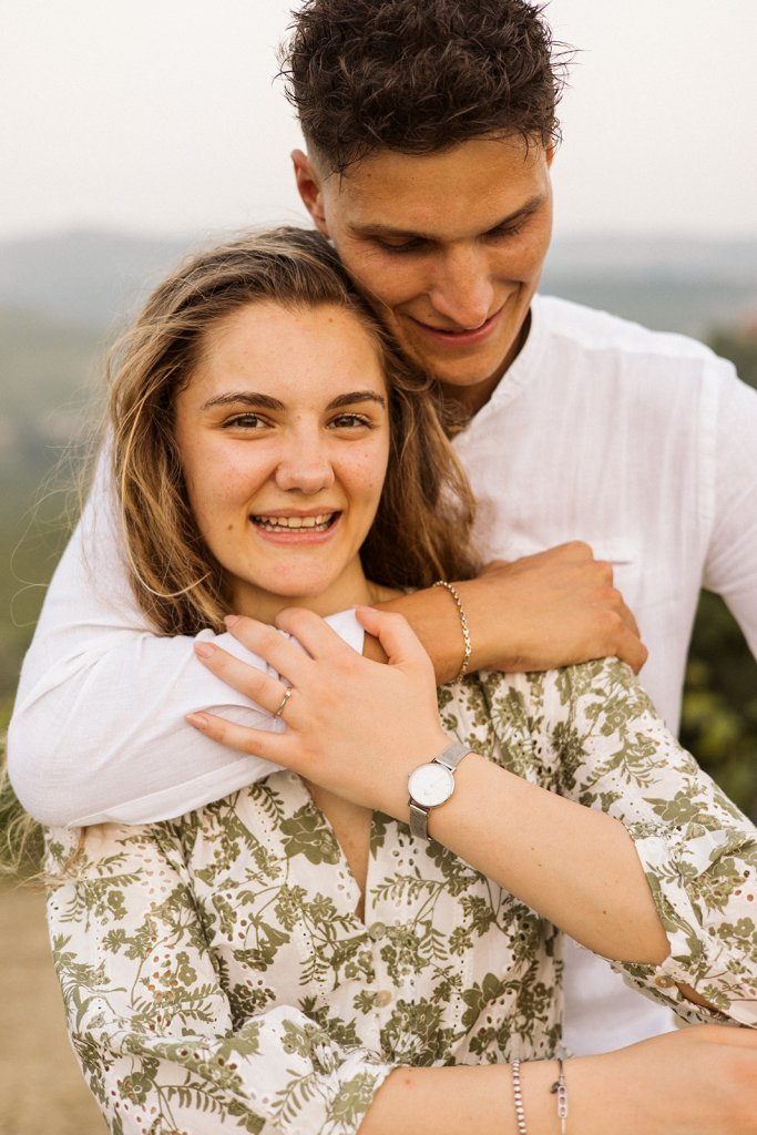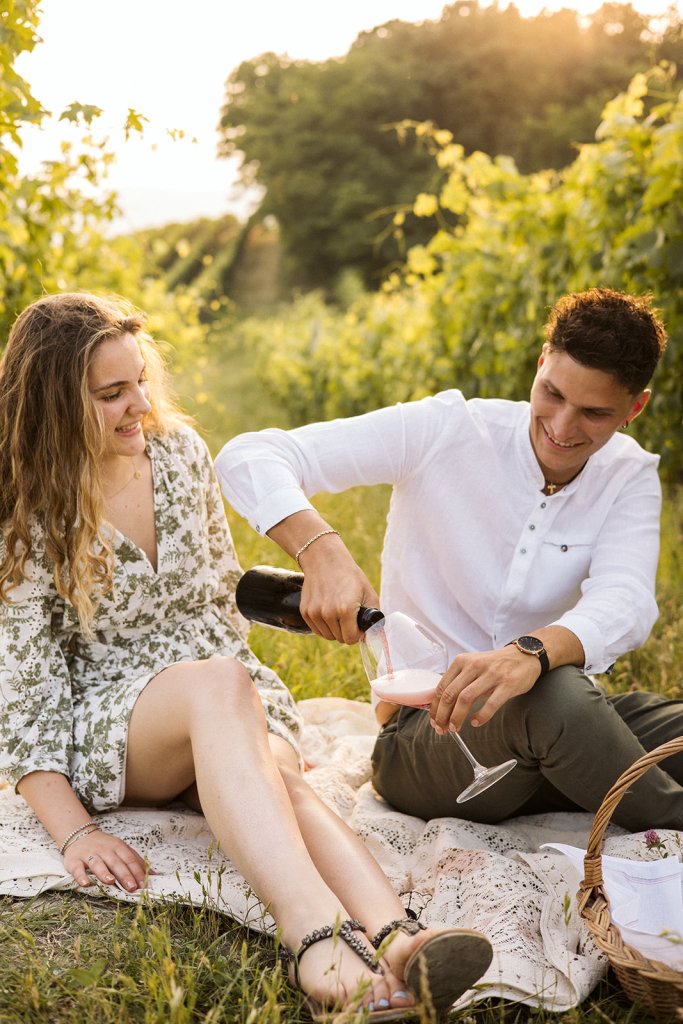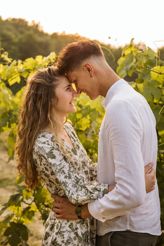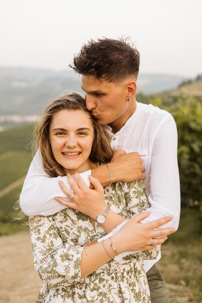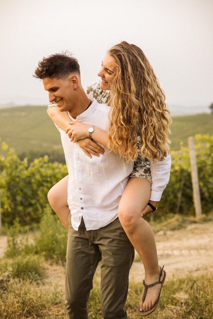 La sessione si è chiusa con un tramonto che da qui sa essere così intenso. Ammirarlo da questo punto delle Langhe è sempre emozionante, ma con Anna e Riccardo davanti all’obiettivo ha assunto un valore diverso: un orizzonte che sembra aprirsi sul loro futuro.