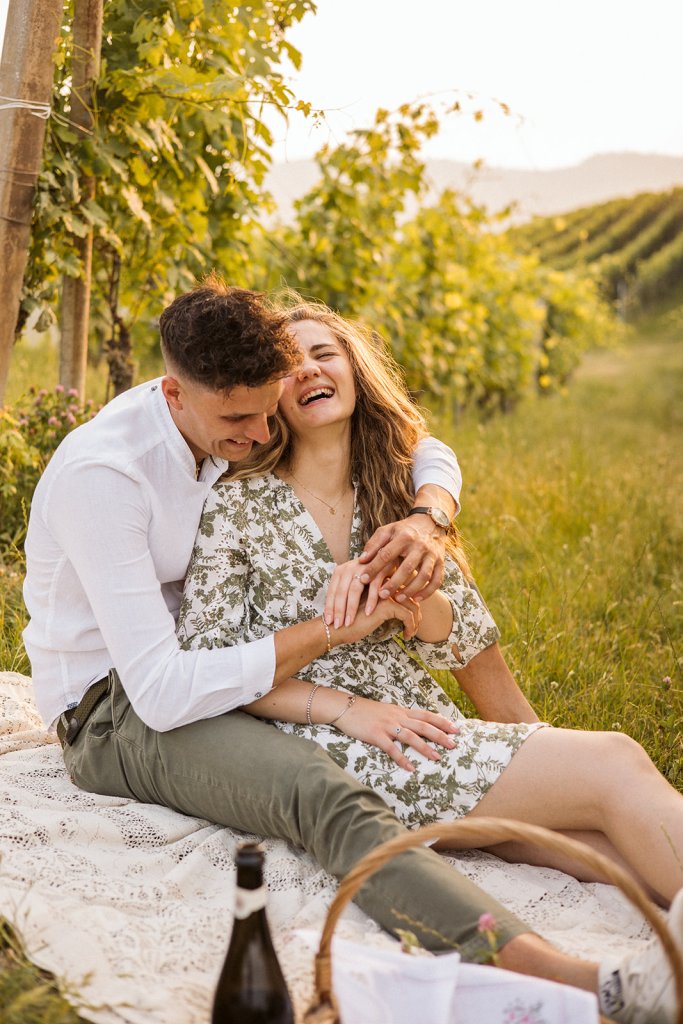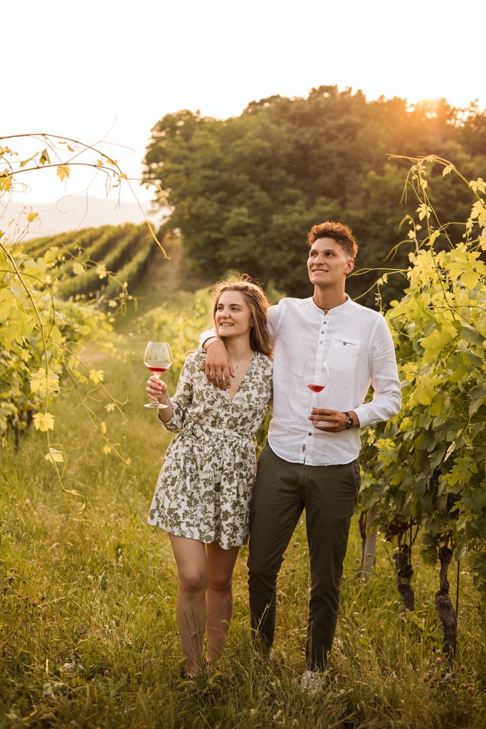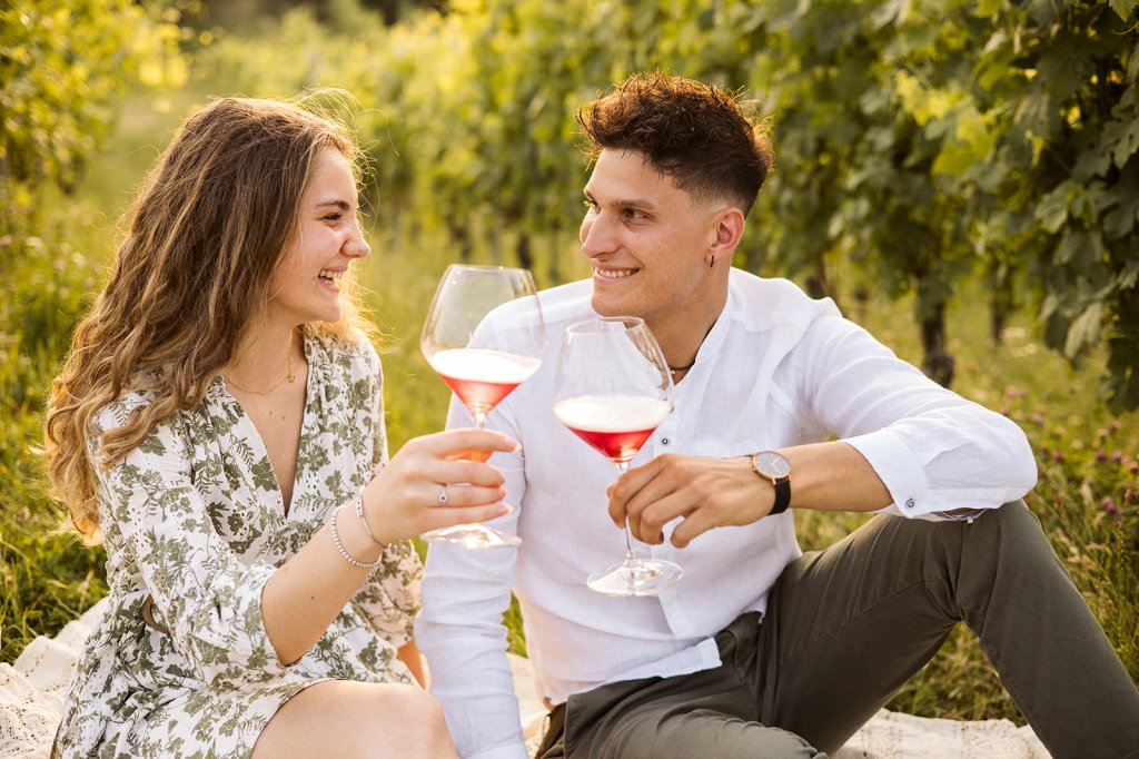 Tra i filari si sono lasciati andare, tra risate contagiose e sguardi che raccontano complicità senza bisogno di parole. Ogni passo era un pretesto per ridere, ogni abbraccio un’occasione per fermare il tempo in una fotografia.